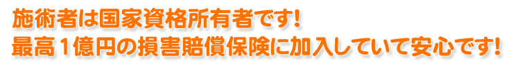 万が一、治療中に不慮の事故が起こった場合でも、国家資格者のみが加入できる