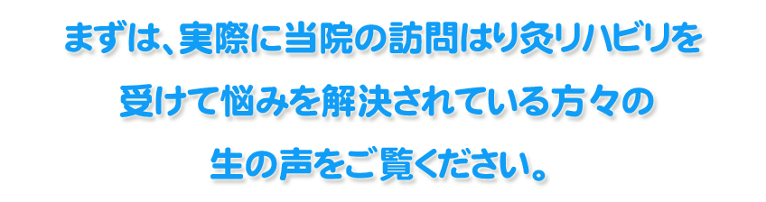 もちらん症状の程度により個人差はありますが、まずは、はり灸リハビリの