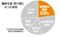 そして実は、そういった要支援・要介護状態になる自立度の低下や寝たきりを引き起こす最大の原因が【運動器の障害】