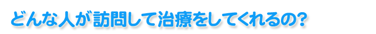 などに対して、ご自宅や介護施設に伺ってリハビリ(運動療法)やはり灸治療を行い、筋肉・関節の柔軟性の回復、維持や