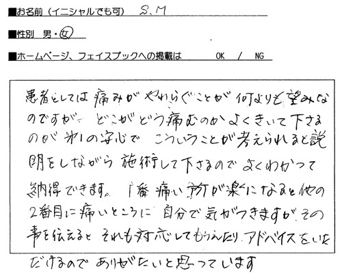 患者様からの情報を大切に、個人個人に合わせた最適な鍼灸リハビリを心がけています。