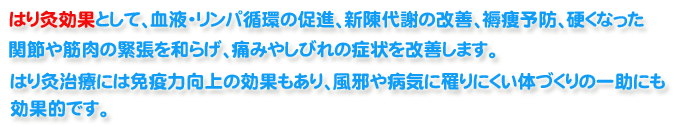 はり・灸治療には体の免疫力(自然治癒力)を高める効果があります。
