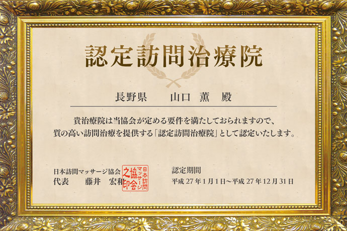 2009年に地元長野に戻り、【訪問鍼灸リハビリ ごゑん治療院】を立ち上げ、同時に【日本訪問マッサージ協会】