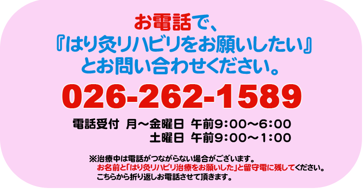 自費でのリハビリマッサージやはり灸治療も行っていますので、お気軽にお声をおかけください。