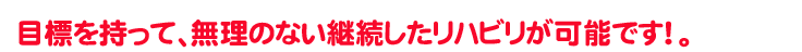 当院ではあなたのリハビリ目標に向かって、あなたの健康寿命を回復させるお手伝いをさせて頂きたいと考えています。