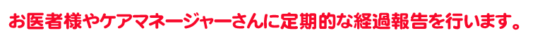 看護師さんや理学療法士さん、作業療法士さん、ヘルパーさんの皆様にご理解頂き、関係機関と積極的に連携を取り
